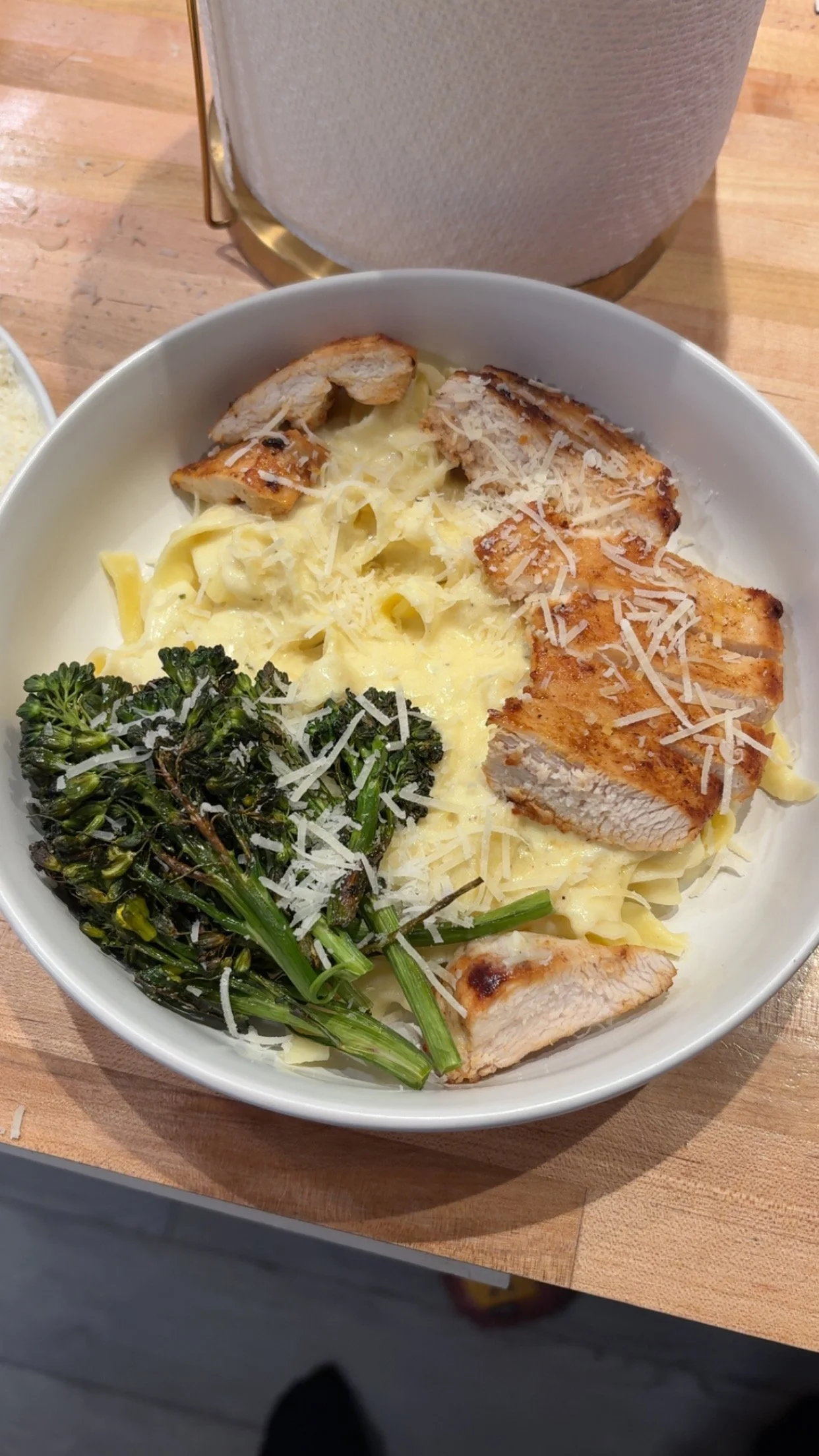 After getting a good workout in, my friend and I made breakfast and then sat around her kitchen island and started on a 1,000-piece puzzle (don’t judge me). We put Love is Blind on the TV and worked on this puzzle for about 3 hours before taking a break to do some shopping. We decided to stay in for Friday evening’s meal instead of going out, so my friends husband whipped up some homemade pasta and we had chicken alfredo with some broccolini on the side. It was so good! Our dinner wouldn’t be complete without dessert, so we got some mini bundt cakes from Nothing Bundt Cakes.